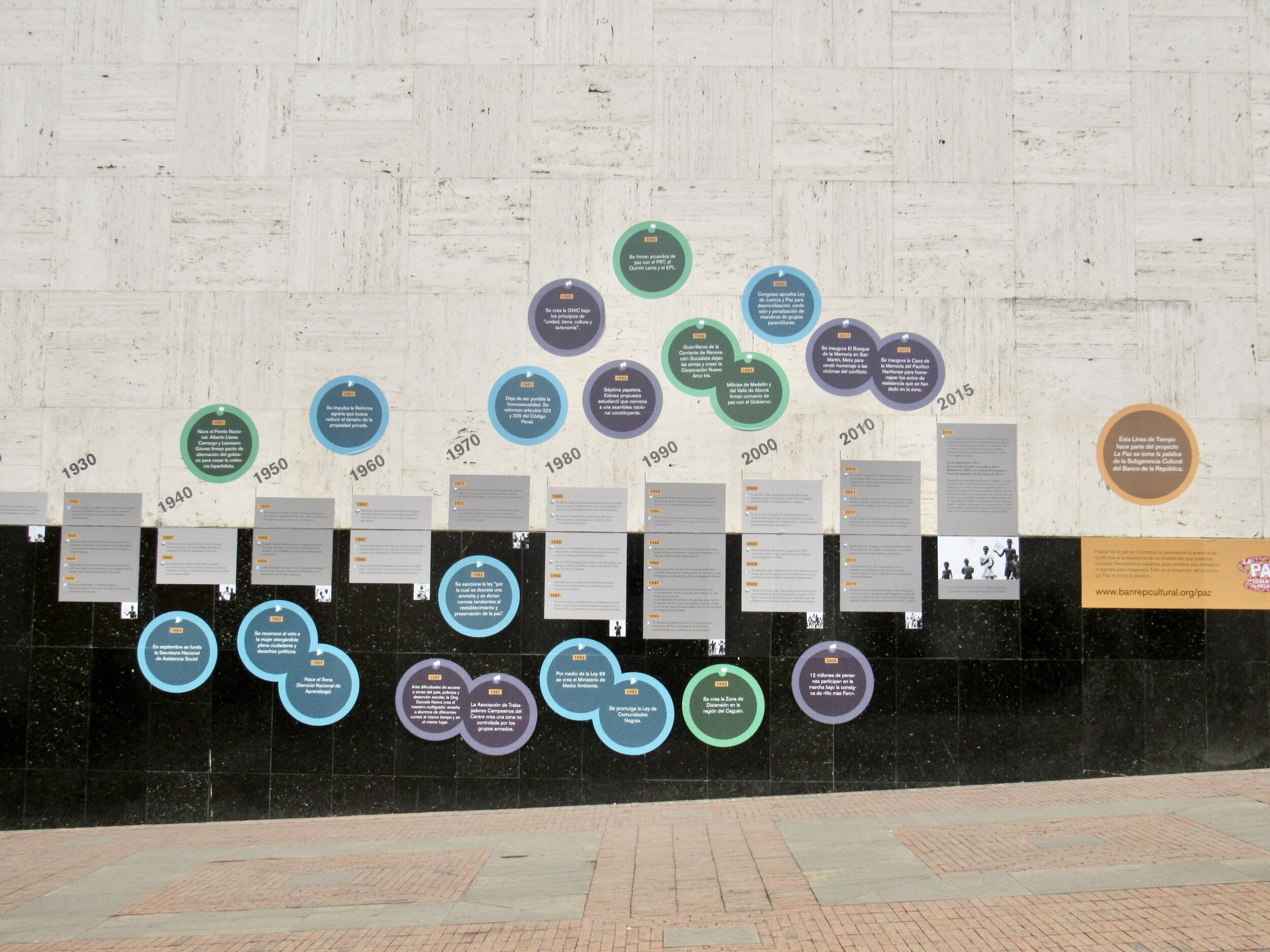Outside the museum is a wall covered with the timeline of “peace events” that have taken place in Colombia since 1900. Considering all the violence that goes on in the country, it’s nice to see some focus on peace. Note that it wasn’t until 1957 that women were allowed to vote in Colombia.