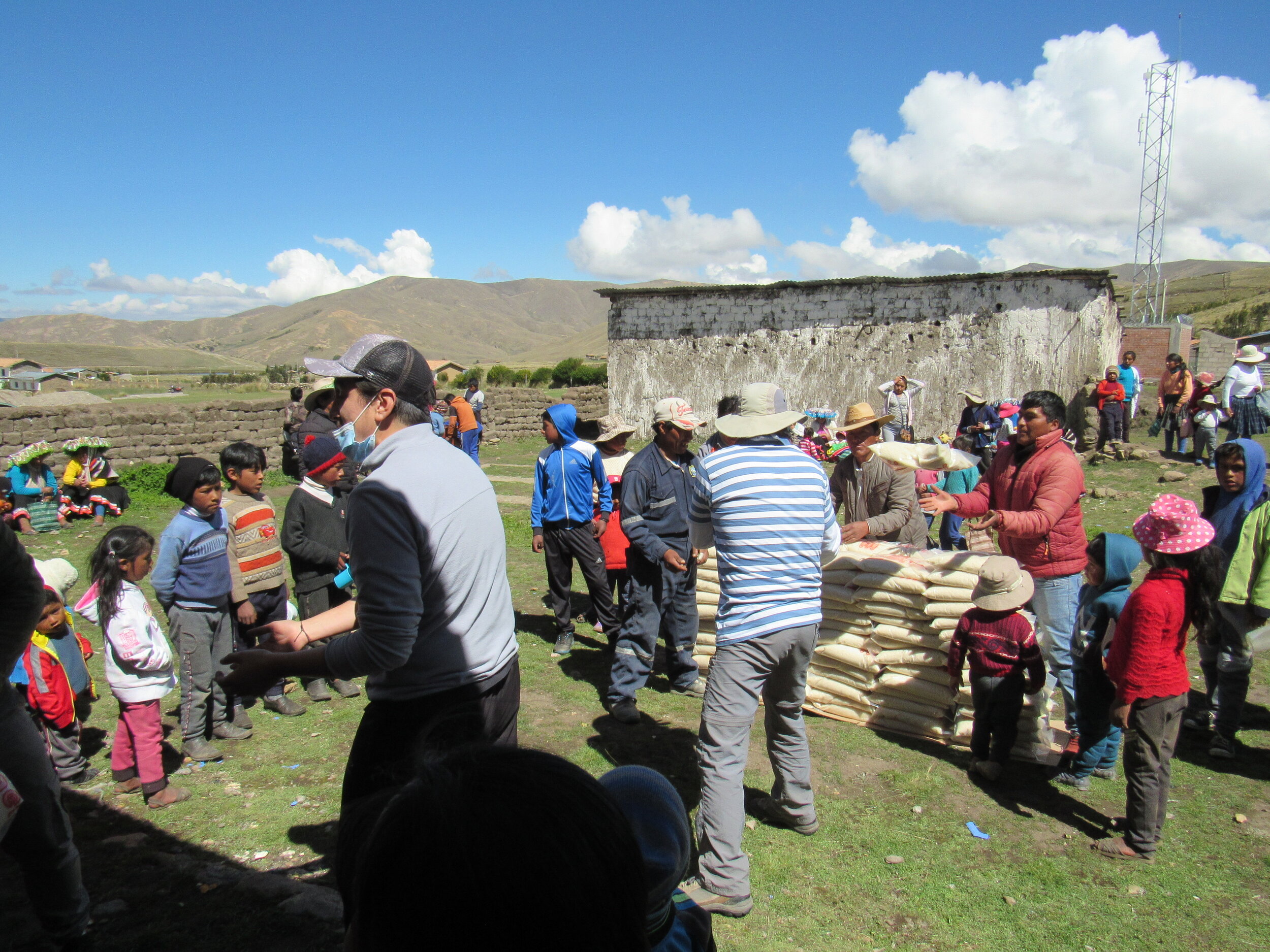 However, it has probably been months since the people of Mayubamba have had an excuse to get together for a happy event. Even in rural areas, people are very aware of the global pandemic, the numbers of people infected and dead in Peru, and how important it is for them to stay isolated from anybody outside of the community. I am acutely aware of the risk that we pose to them, coming from Cusco. We always keep our masks on, try to keep some distance, and wear gloves when we are giving food to people.