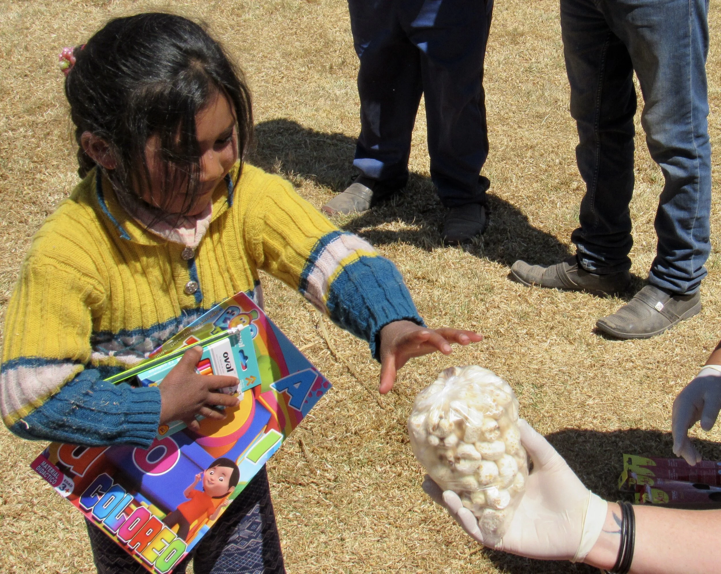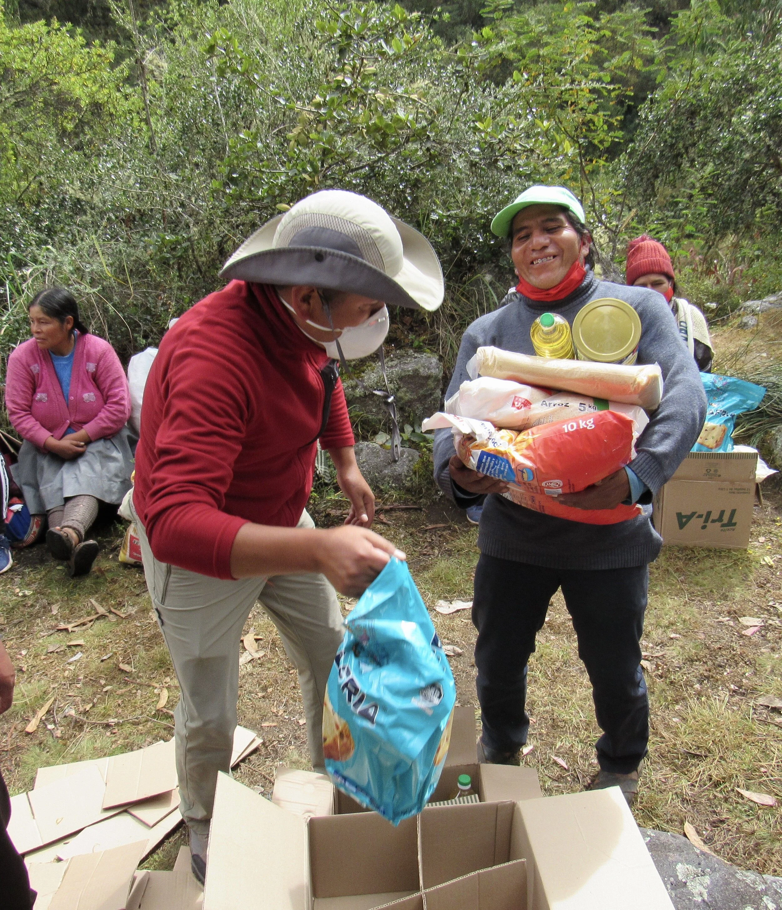 Is wearing masks enough? We are always outside, which is very reassuring to me. Still, how do we know that being outside and wearing masks is enough? I had Auqui buy gloves for our team for last Saturday, in Chahuay. Before Chahuay, we just used alcohol gel. Now we have masks, alcohol gel and gloves and we’re outside. We’re asking the villagers to wear masks, but we are not turning them away if they don’t have one. Could I actually refuse to give food to somebody who came to receive a donation without a mask?