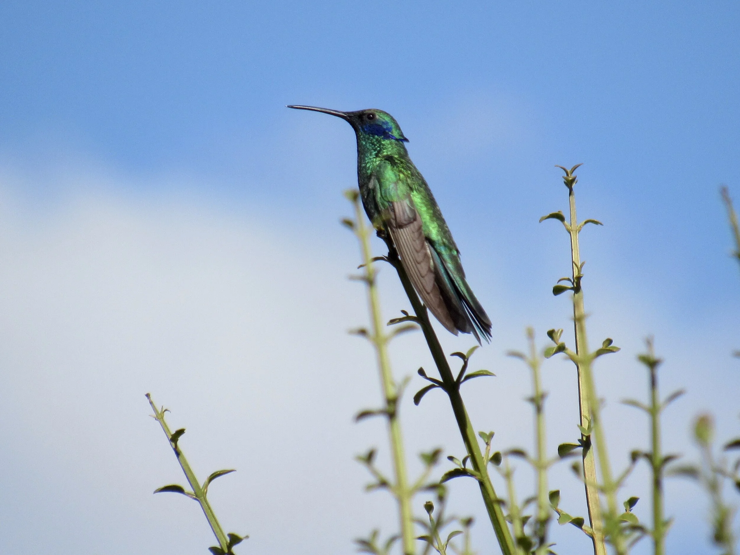 Today I finally got some clear shots of the hummingbird that visits the flowers outside my office windows. After 25 days of blurry images, I got some really great shots. It’s definitely a green violet-ear hummingbird. The white beak and face had me doubting the identification at first, until I realized it’s just pollen on his face. I got some good, sitting portraits, but my favorites are of him with his face in a flower, wings blurry and little feet perfectly in focus. I love little hummingbird feet. There’s my silver lining of quarantine for today.