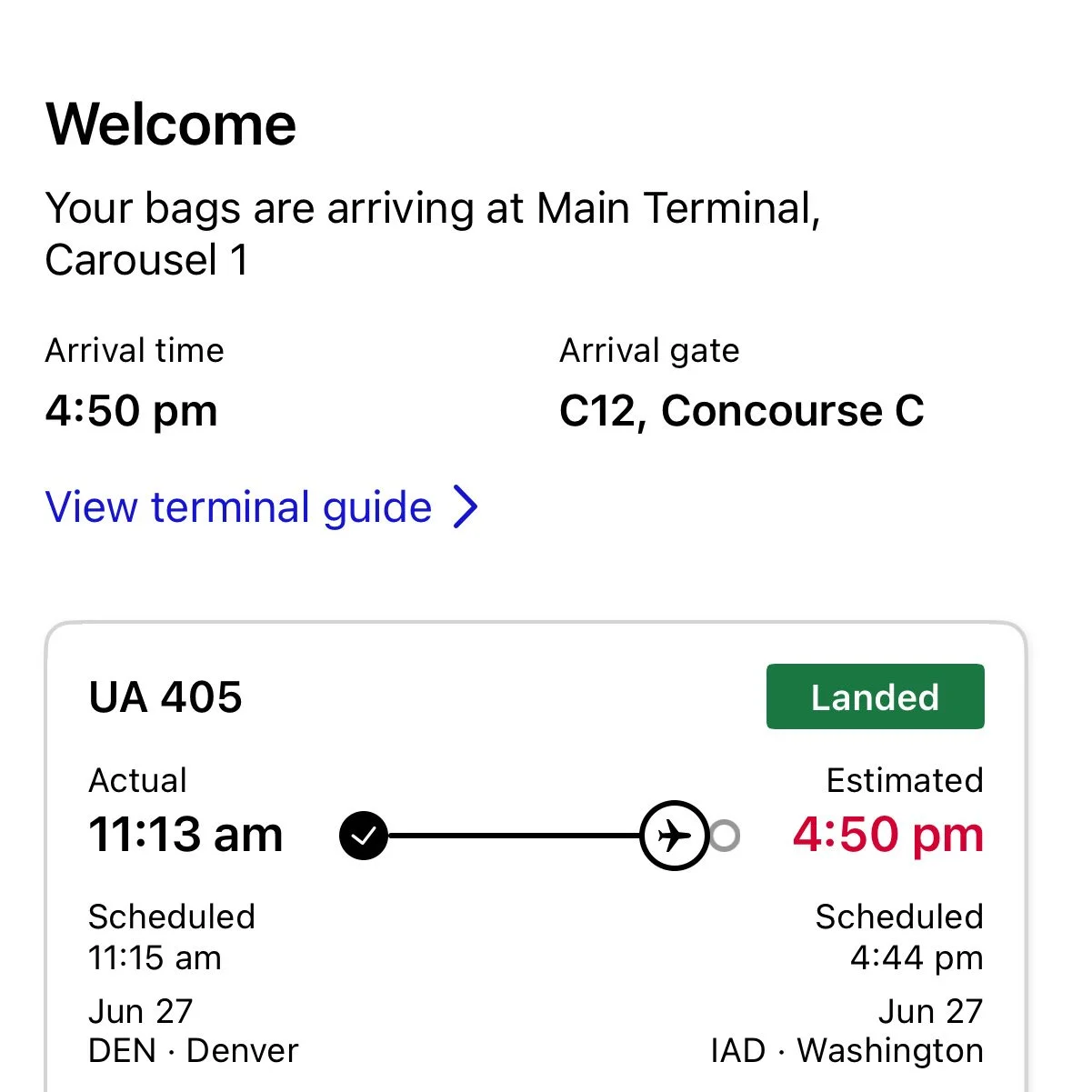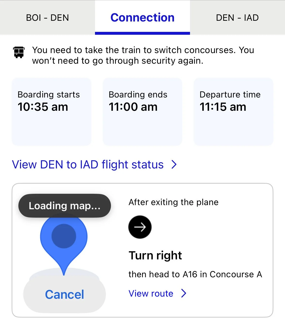 I wasn’t familiar with the Denver airport and was so happy to see all these details for my connection. It also told me how long it would take to walk to the train and how long the train would take.