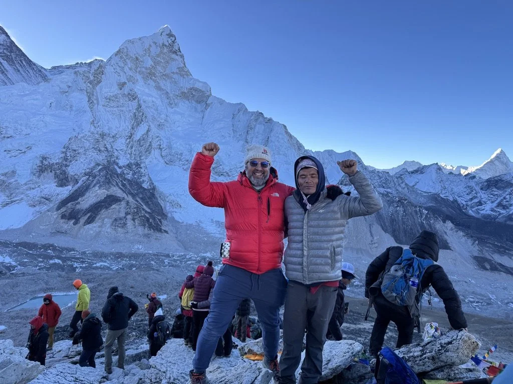 Miguel and Ningma, a porter and Sherpa, at Everest Base Camp.