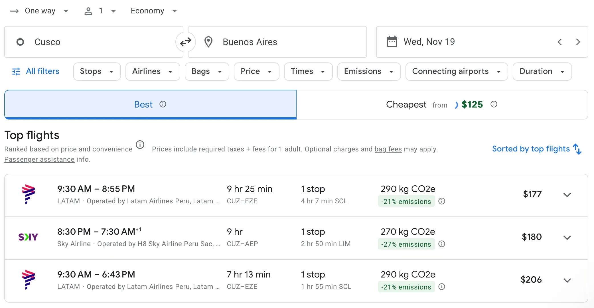 Also, how cool is it that Google flights shows you the estimate of how much CO2 each flight emits per passenger?