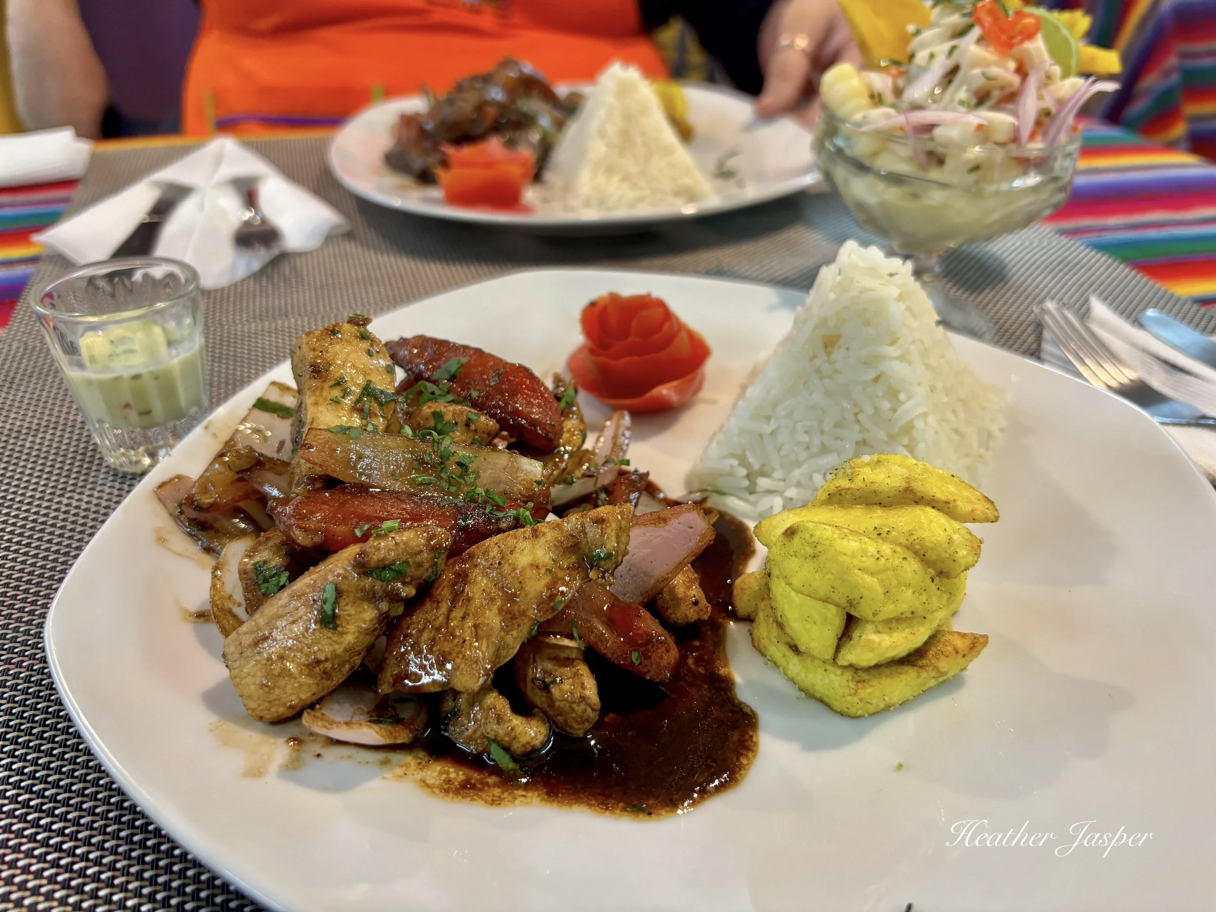This class started with a tour of the famous San Pedro Market then an outdoor market for fresher fruits and vegetables. We tasted a few fruits, then cheese and bread before doing a lot of chopping and prep work. After that was a pisco sour and we made a traditional potato appetizer called causa. We got a choice of ceviche or lomo saltado as the main course.