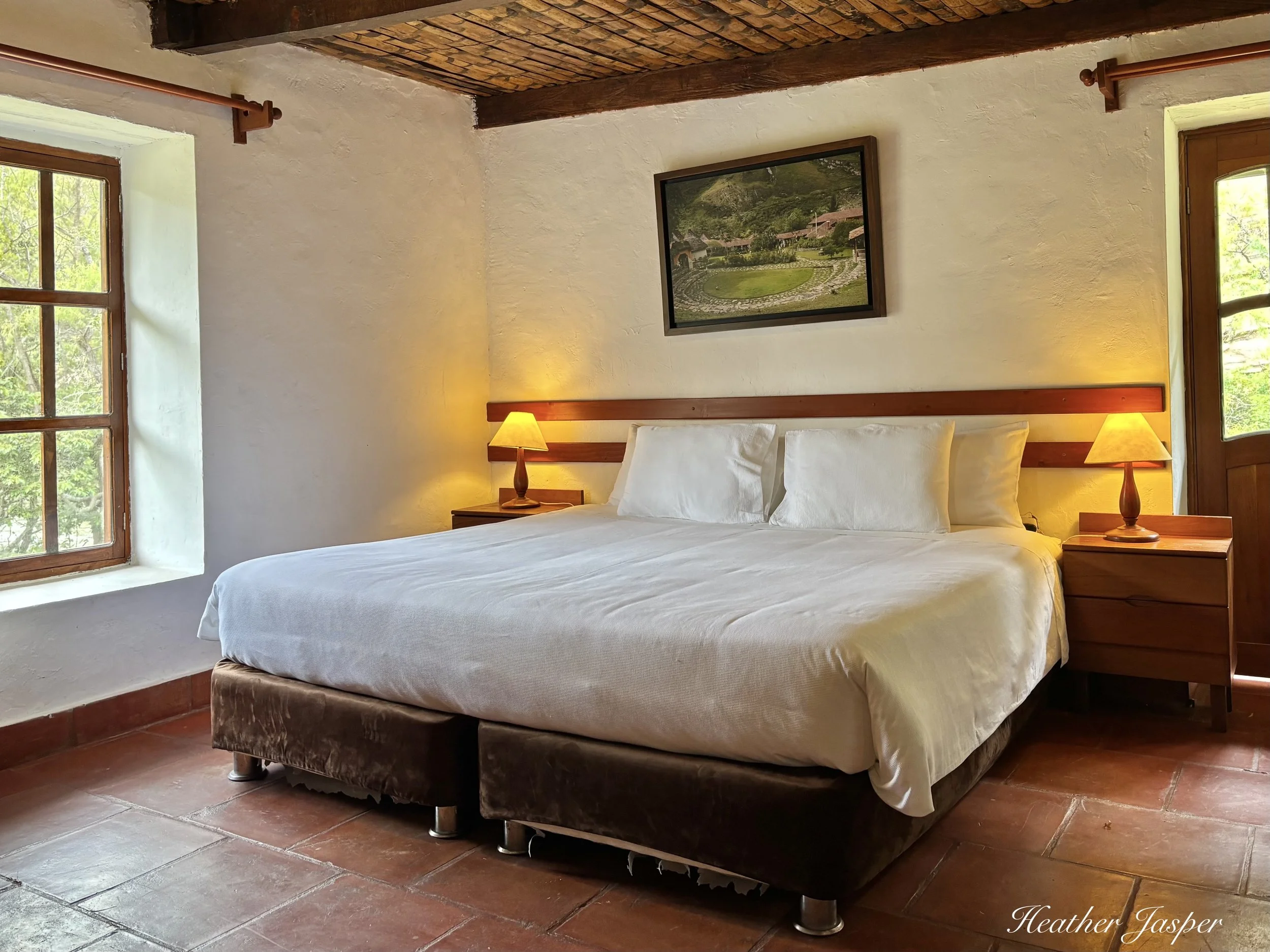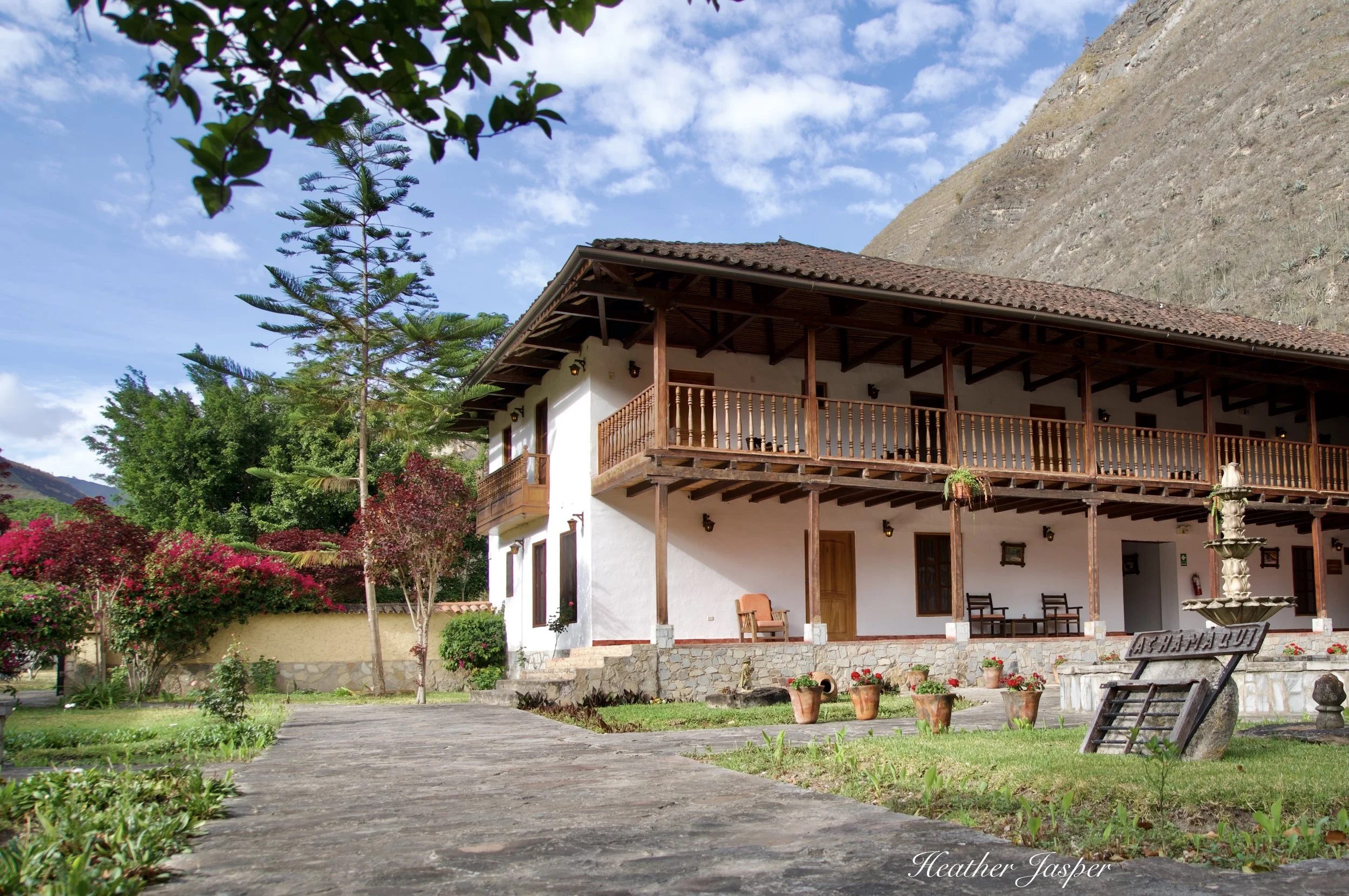 This is a beautiful old hacienda, now turned into a hotel with just 12 rooms. My room was in a corner with a view out one side of fields of flowers and on the other side I had a balcony with a few of the Utcubamba River. At night, I could hear the calming flow of the river and birds like the common paraque, which has a calming hoot a bit like an owl.