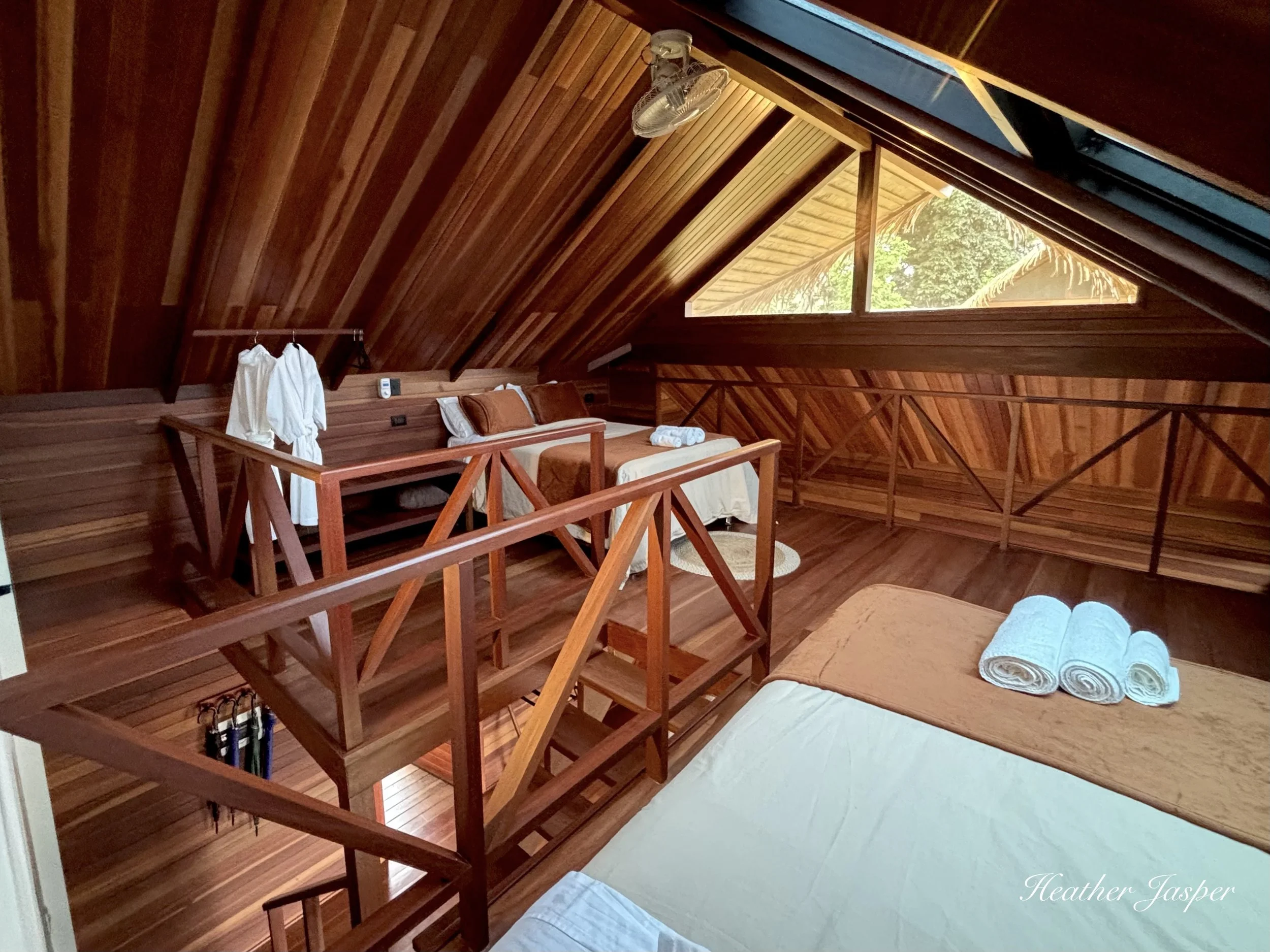 Sachakuna’s larger cabins have a loft with two beds, perfect for families traveling together.