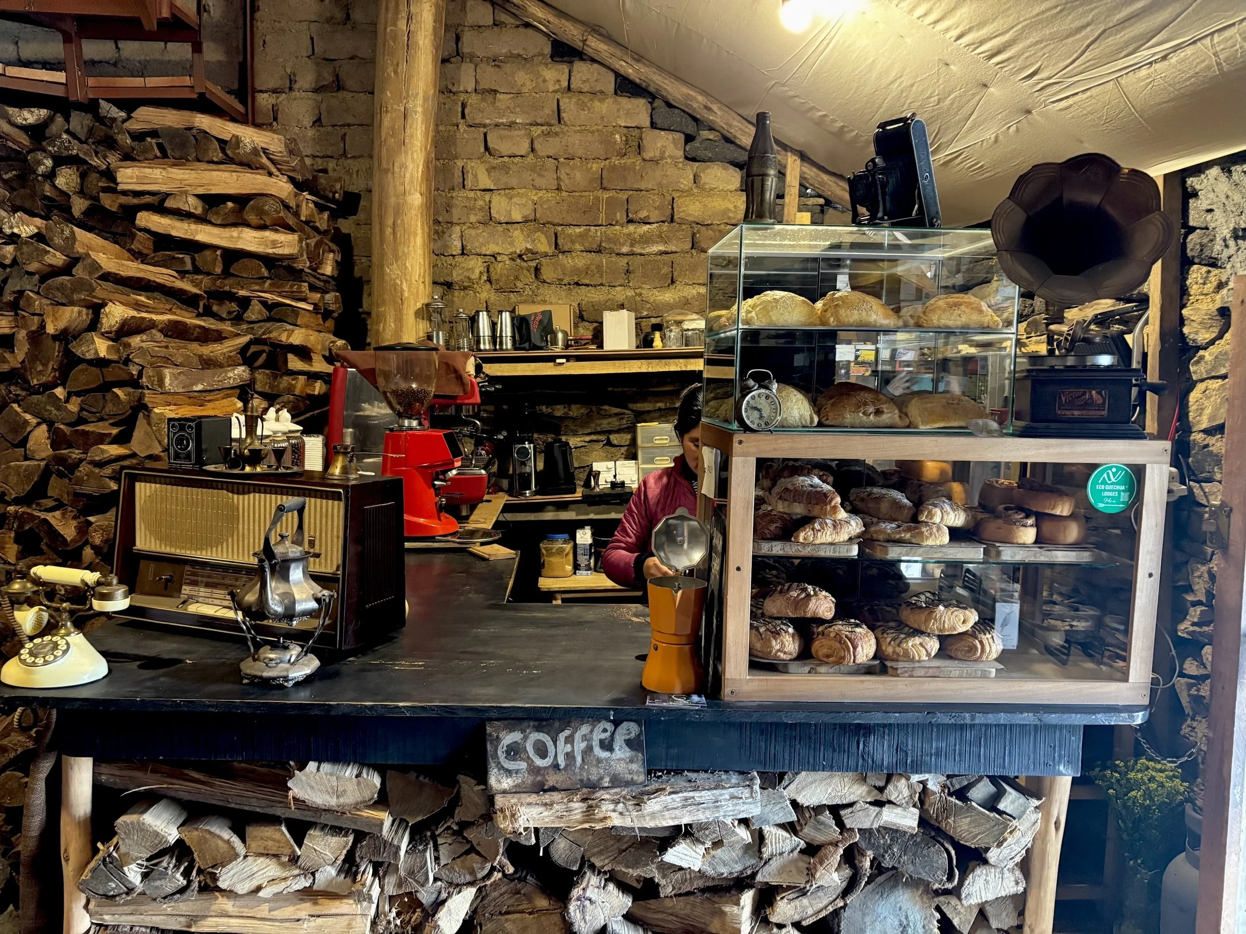 We had a light lunch at Abra Málaga, which has a quirky coffee shop called El Abra (above), with several excellent coffees grown around Quillabamba. I also had a delicious almond croissant and wish we’d had time for a second cup of coffee, but it was time to get back on the road and head downhill to an area of cloud forest on the Quillabamba side of the pass.