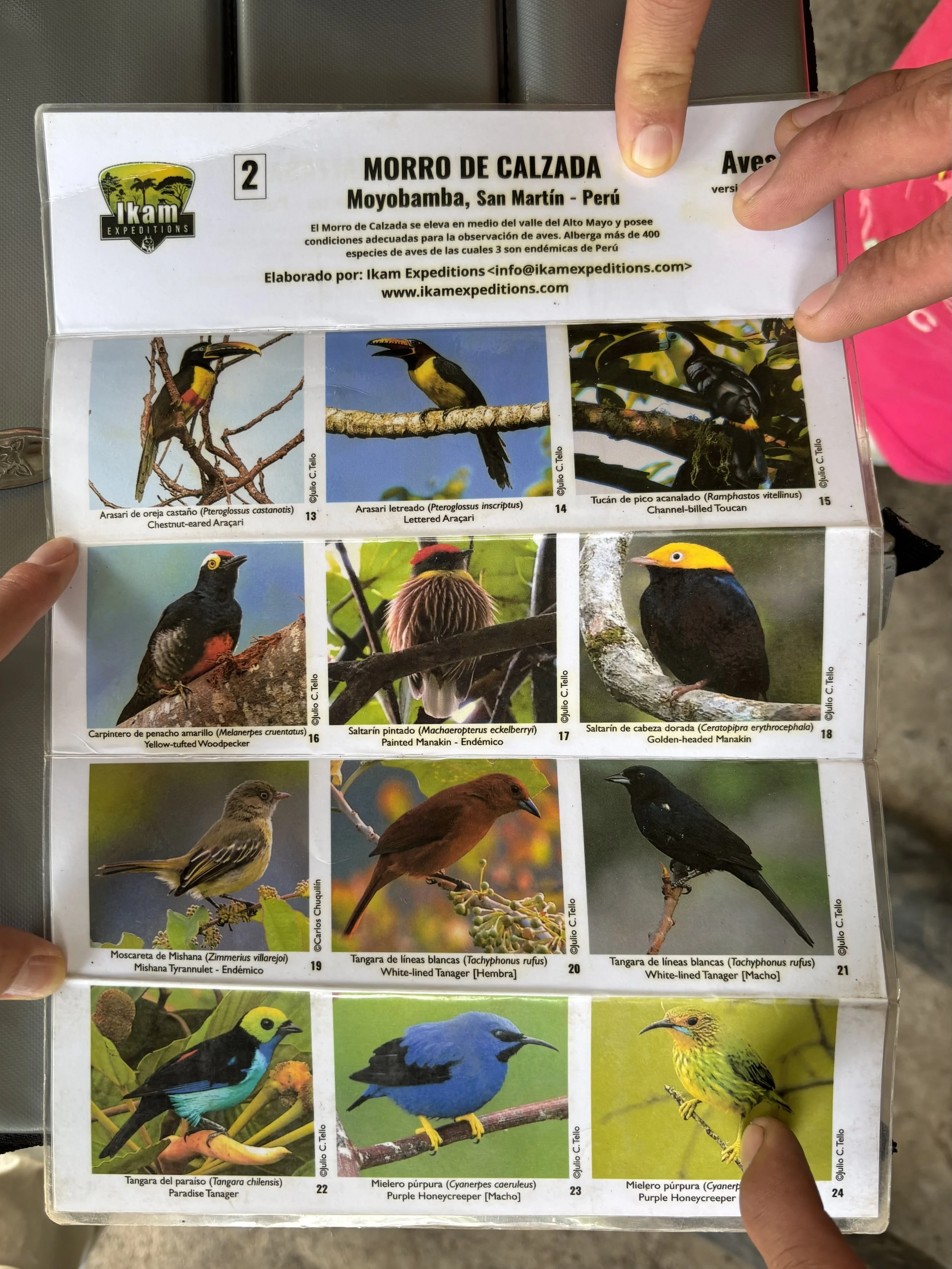 My first birding experience was with Ikam Expeditions, a wildlife tour company based in Moyobamba. Ikam guides are highly experienced and lead expeditions all over the country, but I contacted them because in Moyobamba, they’re by far the best. I got to spend a morning with Erick Reategui, who told me that where we’d be birding, they had identified about 300 species, including several that are very difficult to see anywhere else, like the Rufous-sided Crake. Spoiler: I saw a pair of them and got dozens of photos.