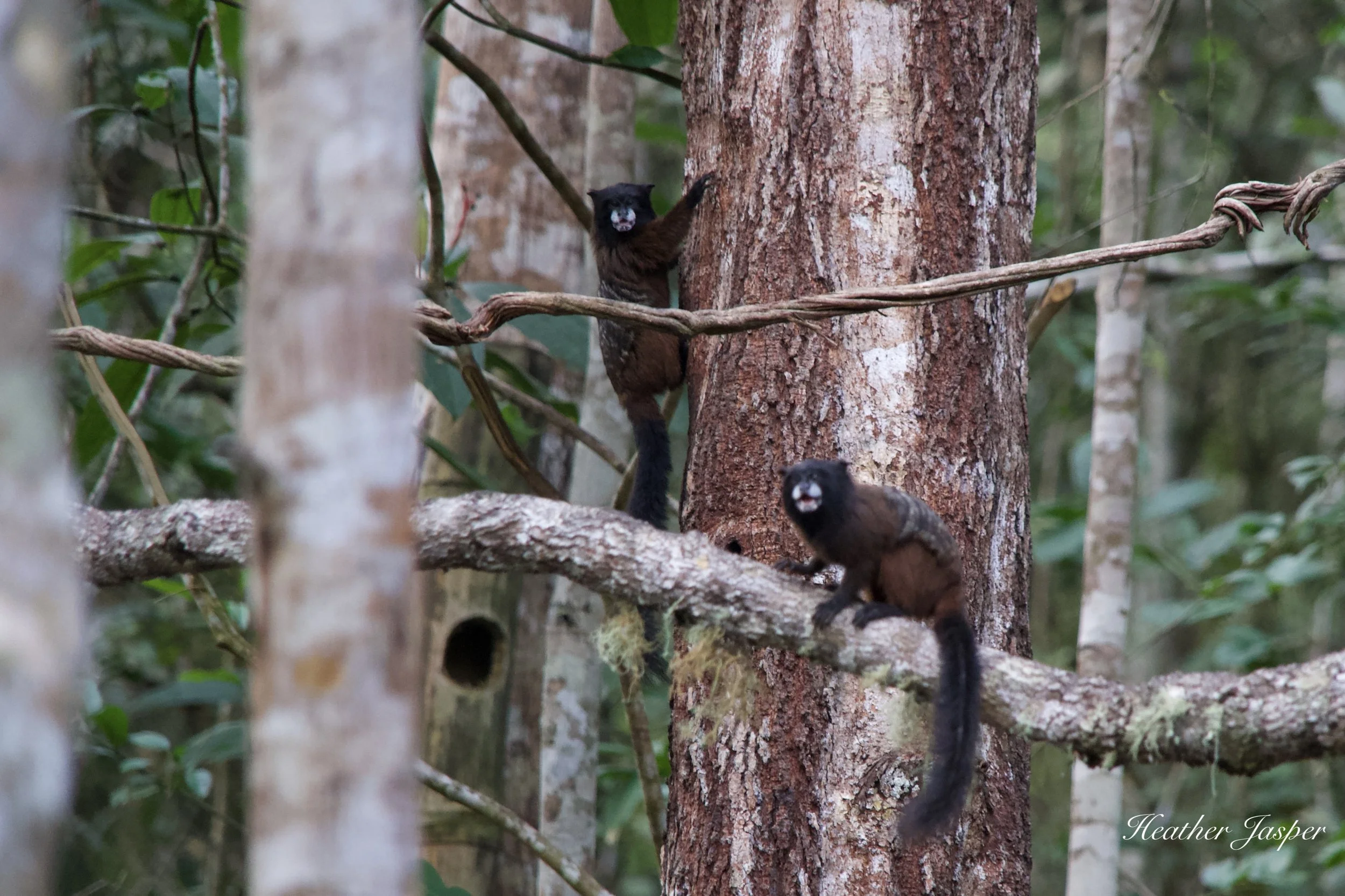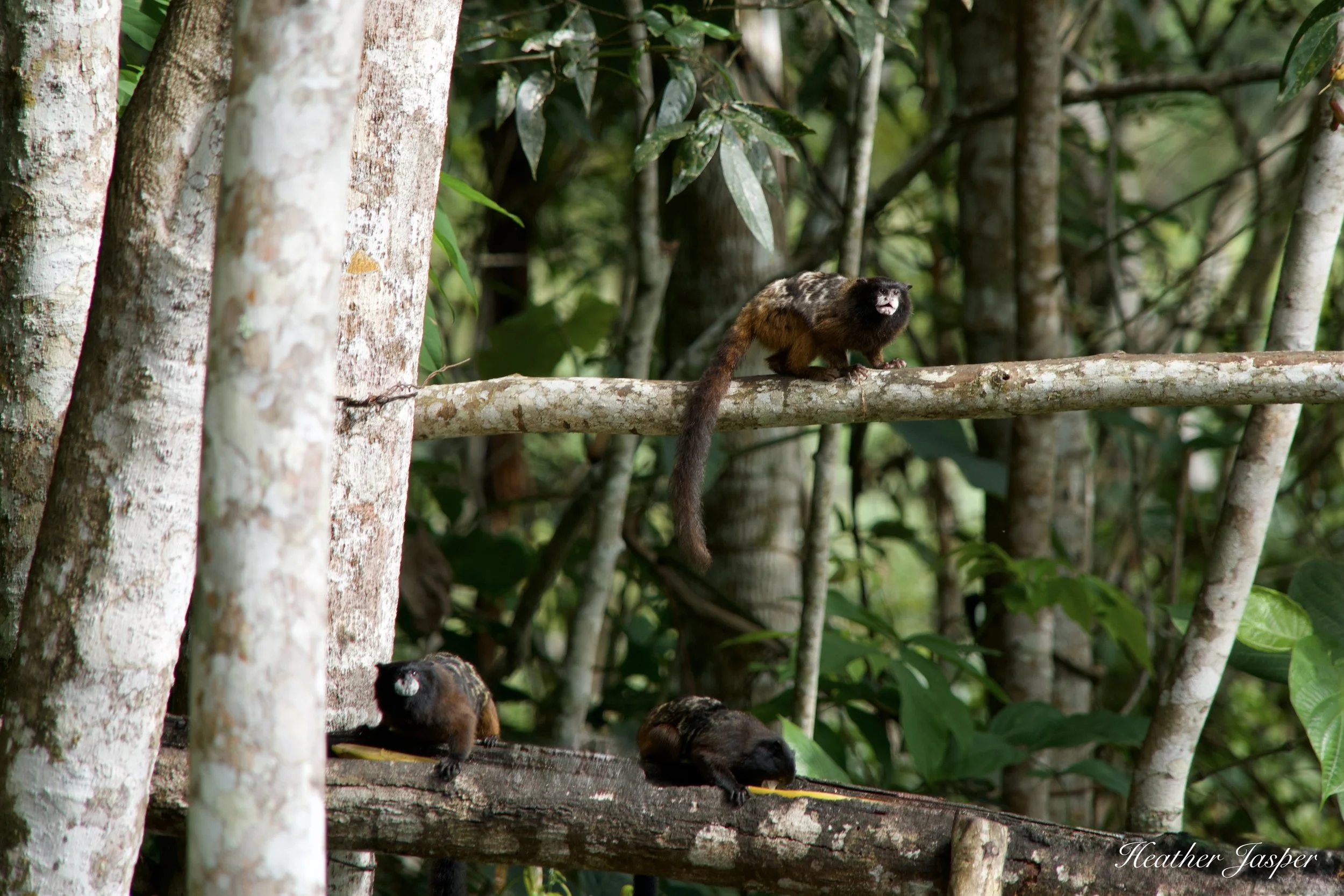 I also got a great breakfast while sitting in a bird blind. Erick picked me up at 6:30 and took me to Ikam Expeditions’s Reserve at Morro de Calzada, where Ikam has built several bird blinds, each overlooking areas that attract different kinds of birds, plus Illiger’s Saddle-backed Tamarins (below). They’re very cute and endemic to Peru, but I’ve seen them before in several other areas of Peru’s rainforest, and I was mostly there for the birds.