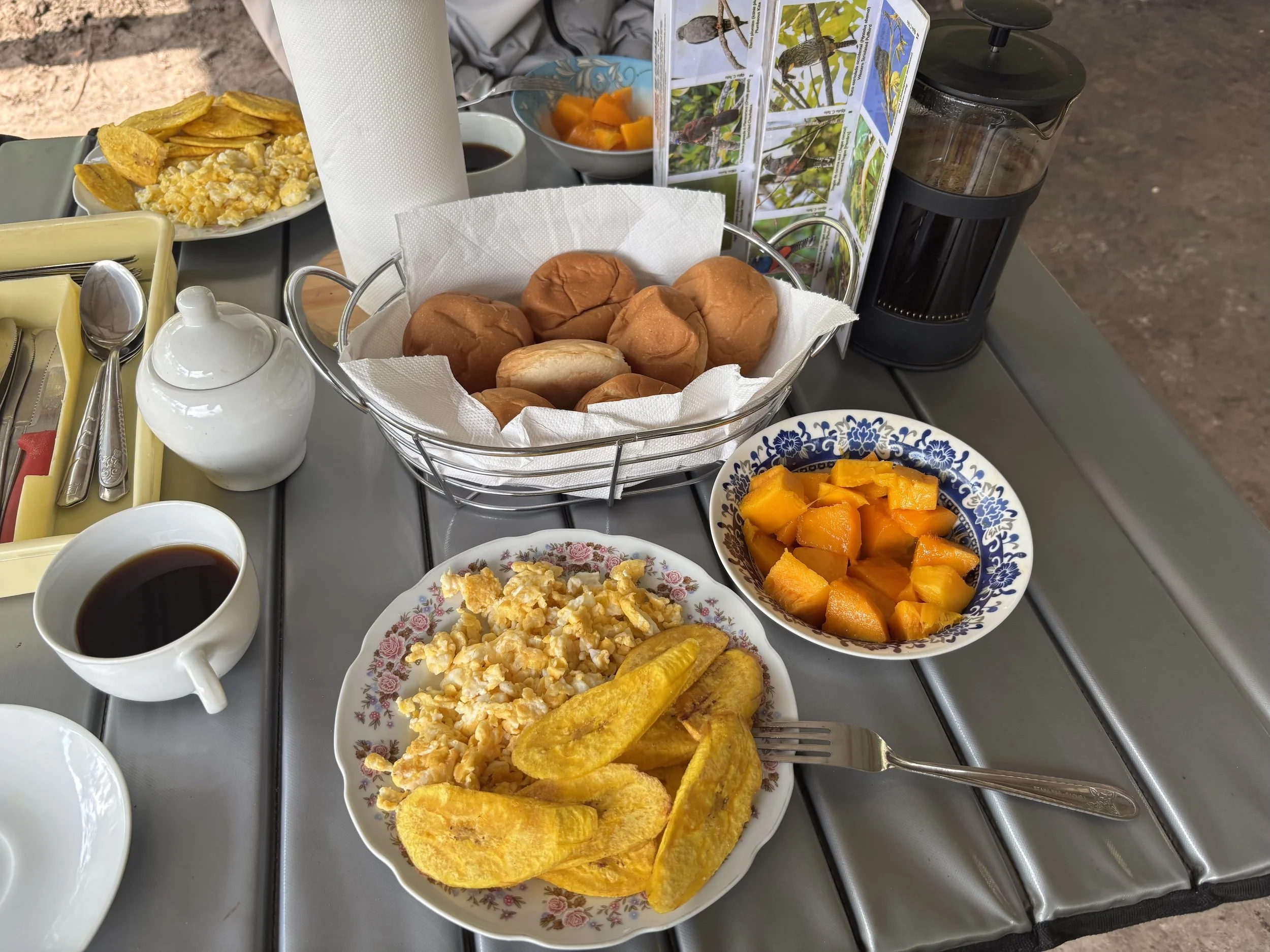 I was happy to wait for the crake to appear because Luis (standing above) serves excellent coffee. Erick is sitting, above.