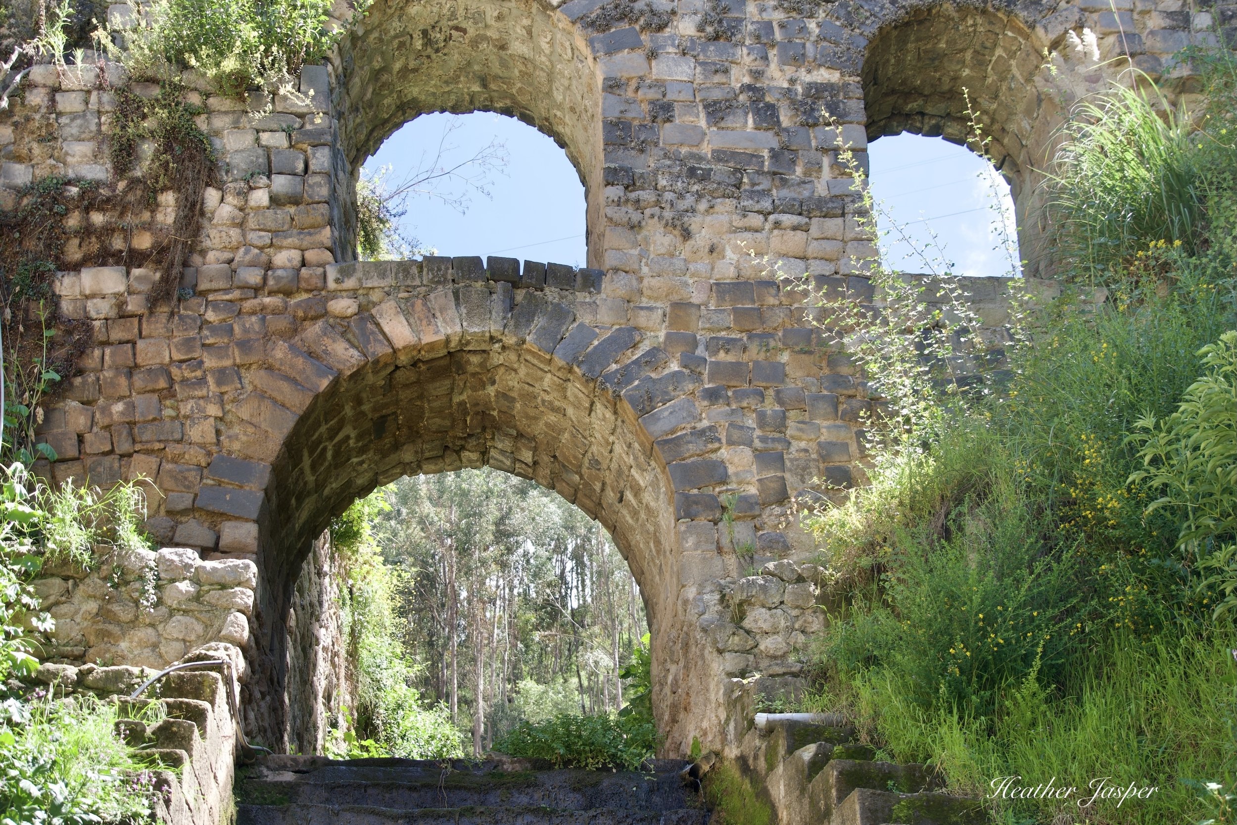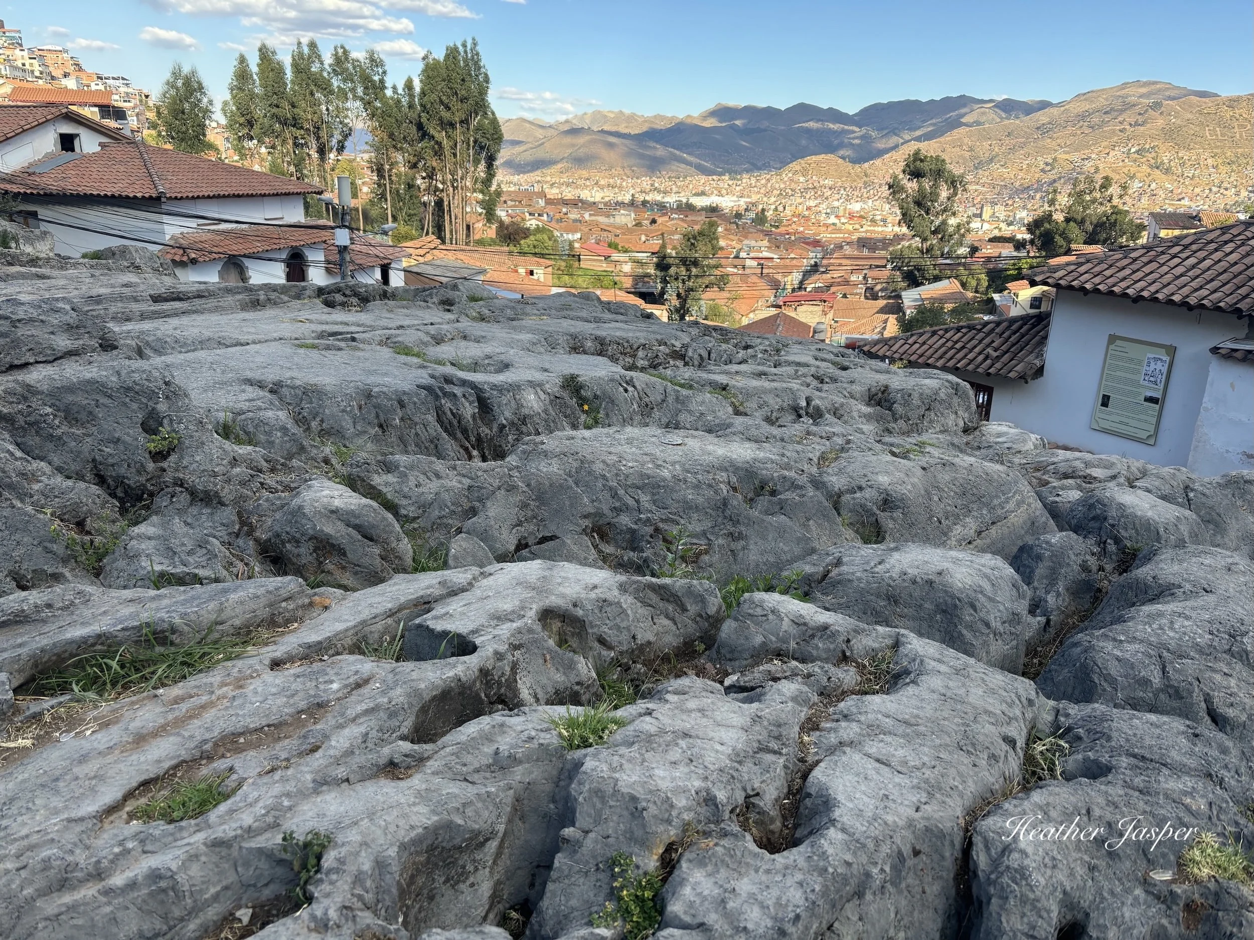 Once you make it to the top of Choquechaka, and climb the stairs, you’ll see a big piece of limestone bedrock, with weathered carvings all over it. This is the Huaca Sapantiana. A huaca is a sacred site, usually something natural like bedrock, but often with carvings all over it. Climb up the stairs on the left to the top of the huaca where there’s a sign with information about the huaca. You can also walk up the canal that’s on the right side of the huaca to a beautiful Spanish aqueduct called, of course, the Acueducto Sapantiana.