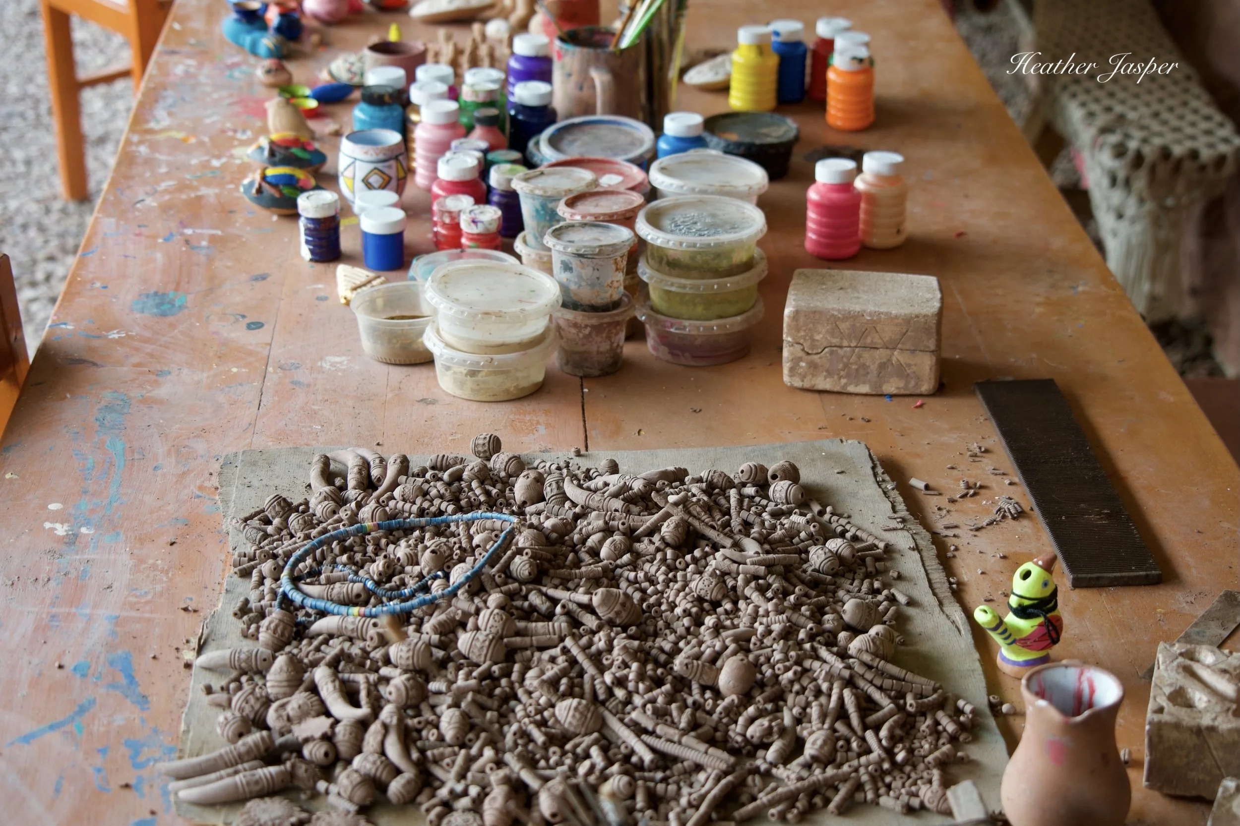 Eloy showed us how he prepares the clay before it’s pressed through their bead-maker or set on the potter’s wheel.