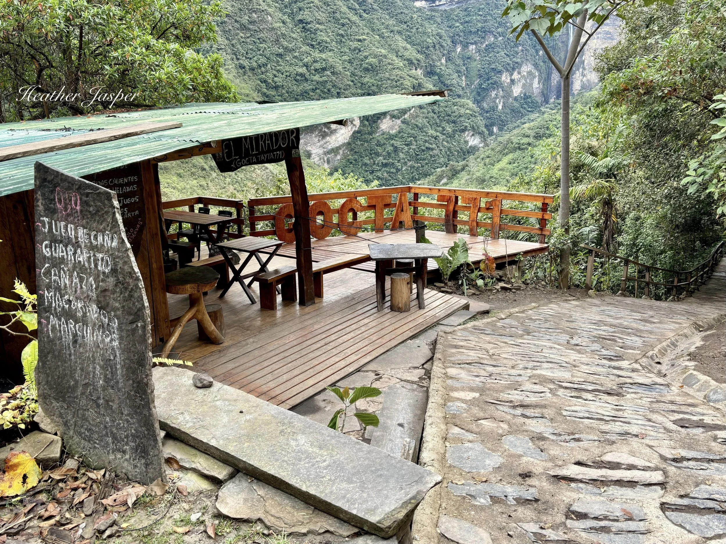 After 3km you come to the Caballariza, where you’ll have to get off the horse. The person will wait there with the horse until you come back. There are bathrooms and nearby are some houses where people sell drinks and snacks. You’ll walk the last 2km to the falls, meaning that you only walk 4km total (about 2.5 miles).