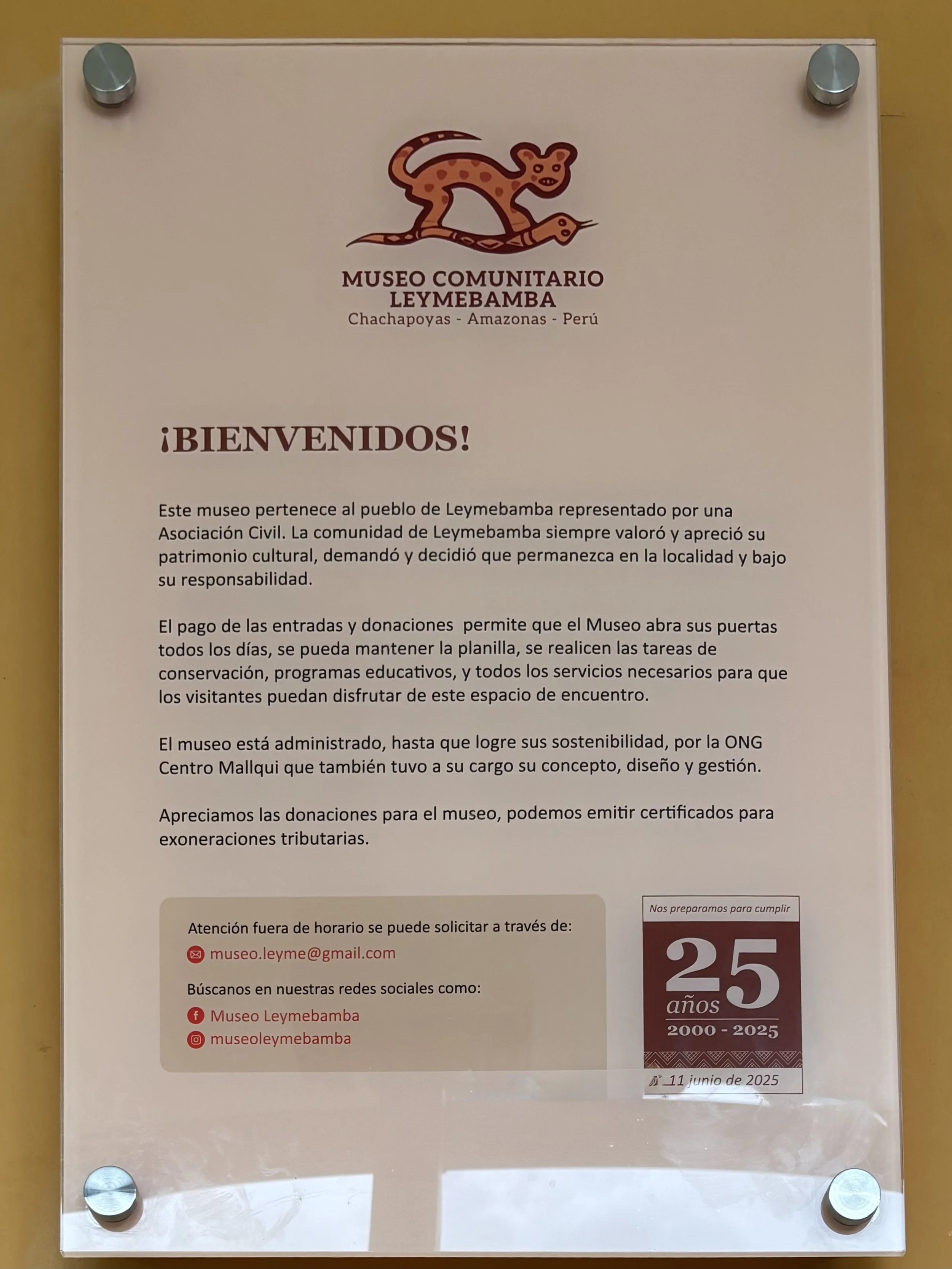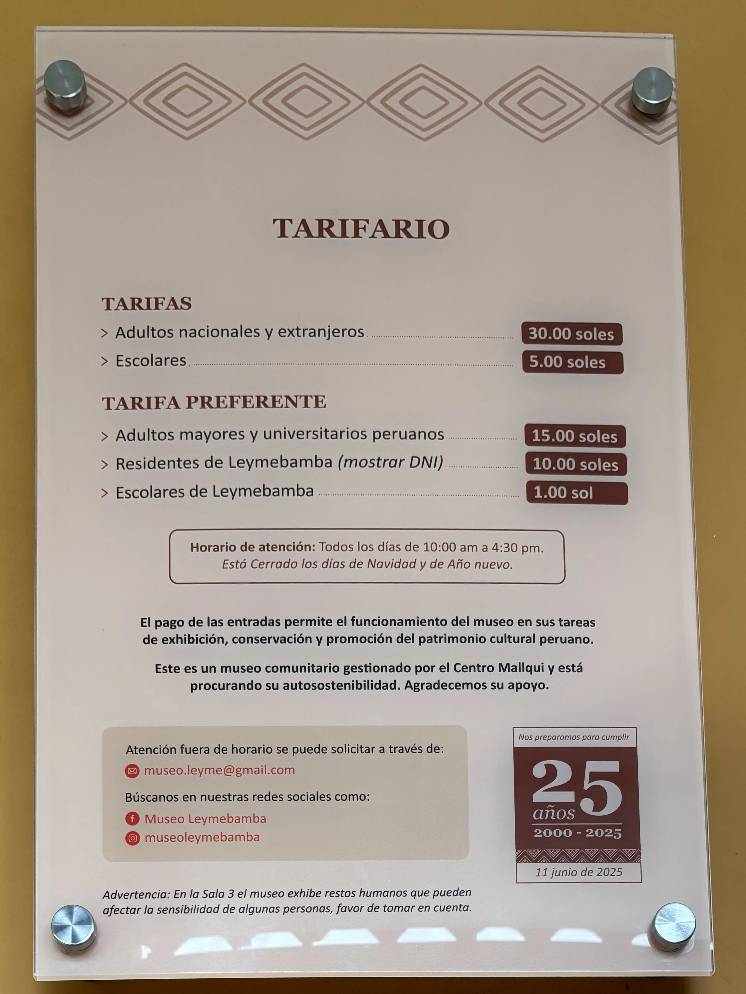 The museum is owned by the community of Leymebamba and opened in 2000. The entrance fee is s/30, with discounts for students and retired people. It’s open every day 10am to 4:30pm.