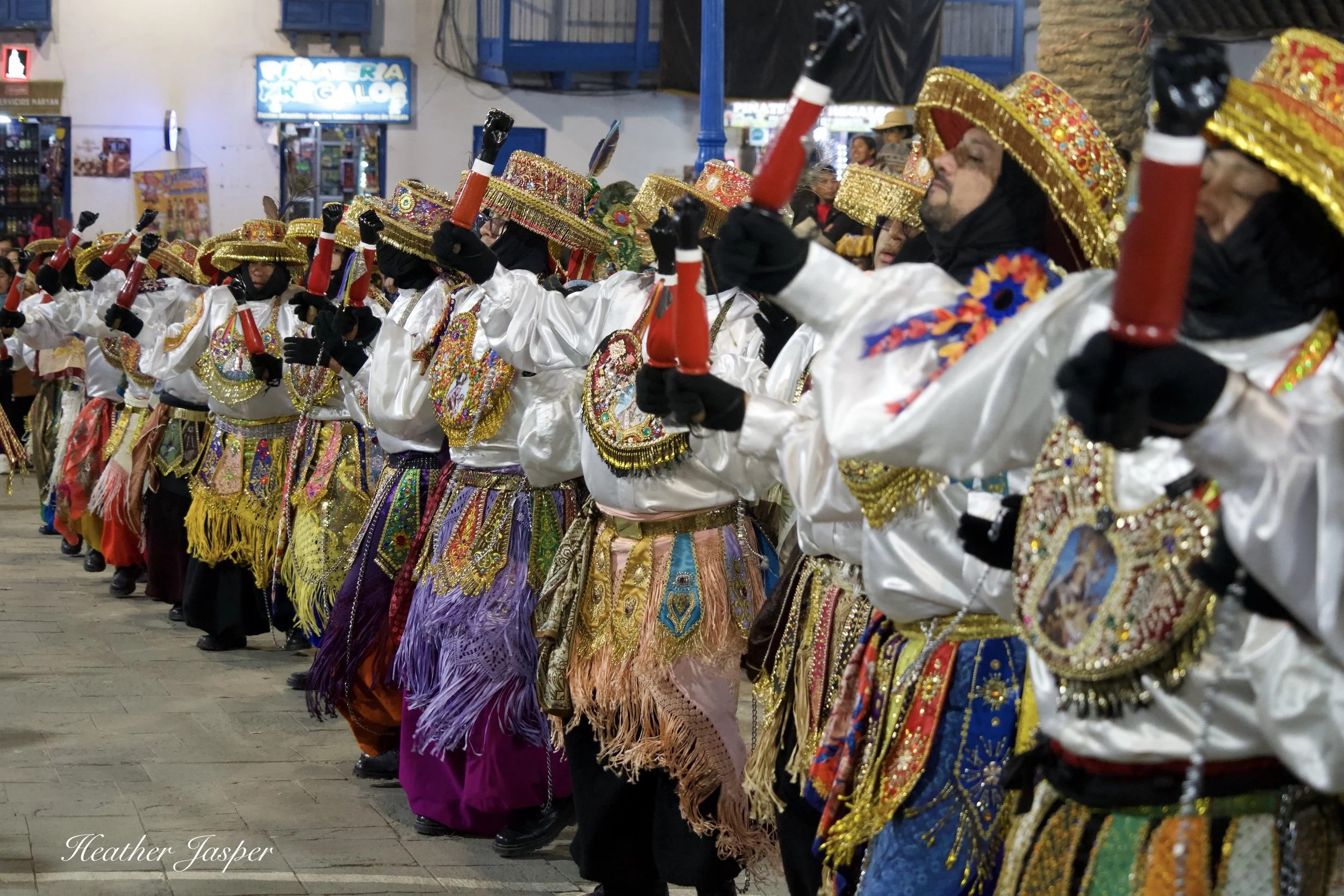 With their masks off, and their hats perched on their makis, the Qhapaq Negro walk backwards, never turning their back on the Virgin and rarely taking their eyes off her. That part was challenging for me, but I learned to walk backwards, just like I learned to stick with the musicians who were always between the two lines of Qhapaq Negro.