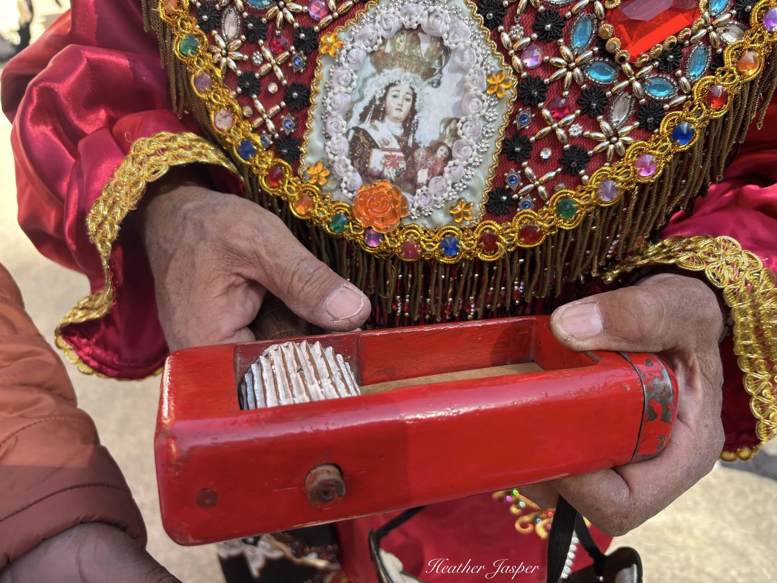 The Guiador uses this matraca to mark time during the dances and to signal to the Qhapaq Negro when to transition between dance formations.