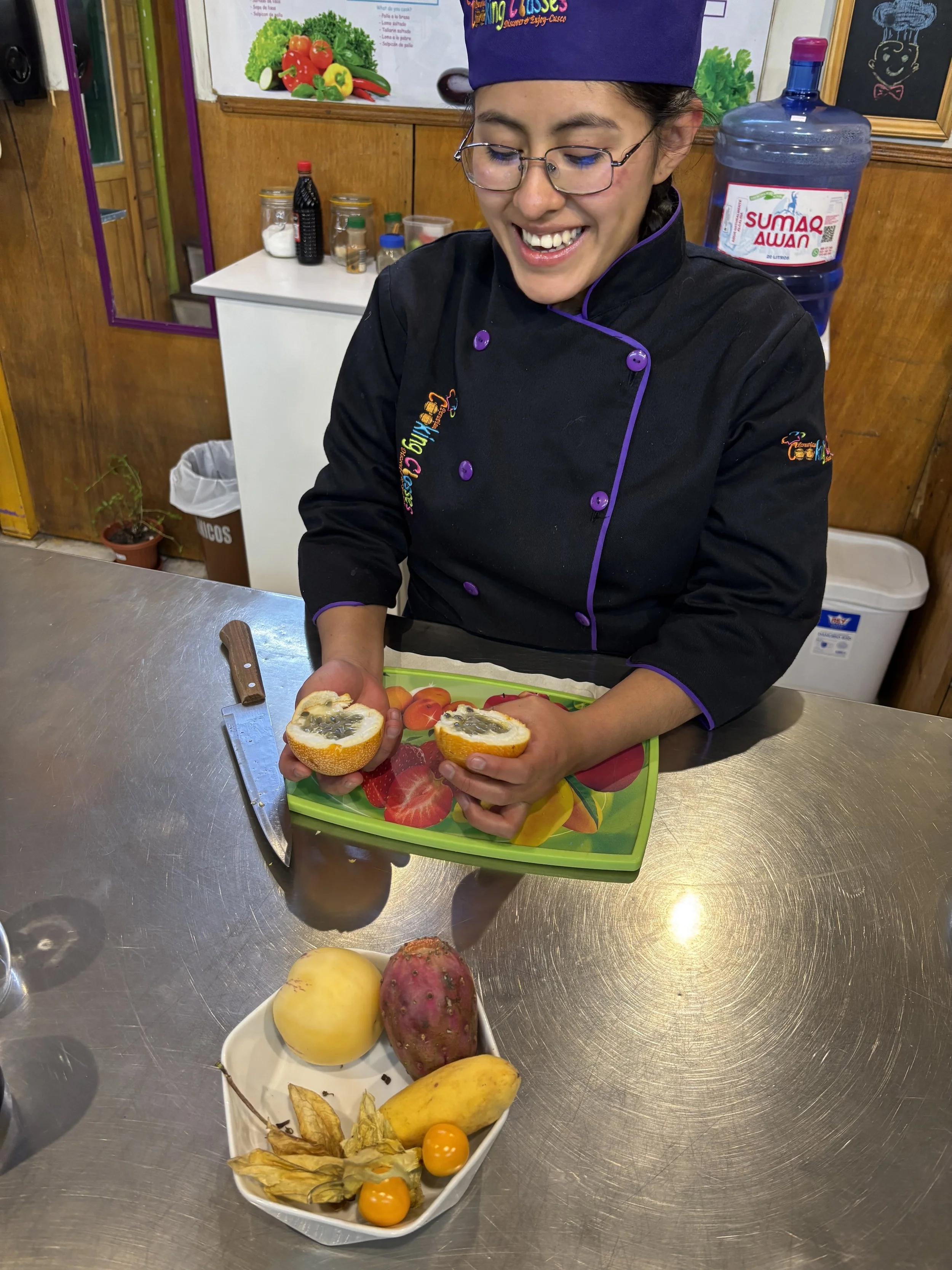 Abigail had five fruits for us to try: granadilla, tumbo, pepino dulce, aguaymanto and tuna.