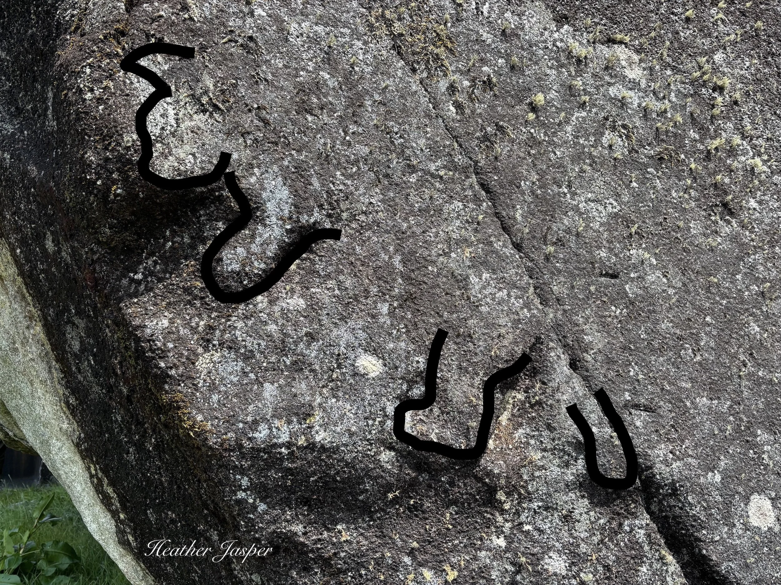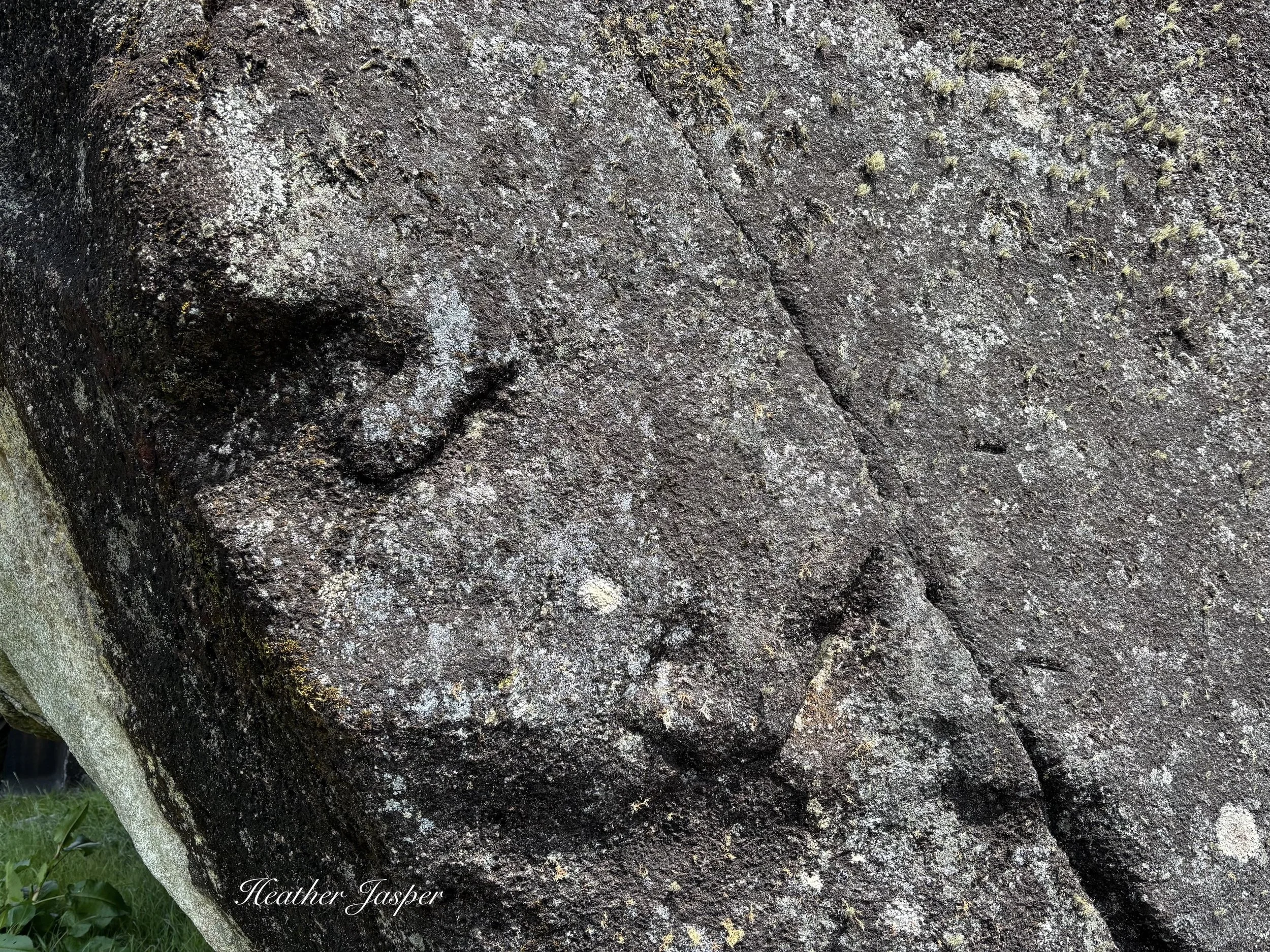 Most of the rock is covered with lichen and a dark patina, but under the side you can see that underneath the stone is white granite.