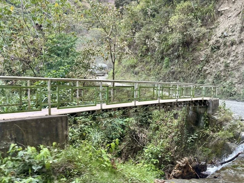 Innumerable streams cross the road, which vehicles have to drive through. There are foot bridges for locals who travel this way on foot.