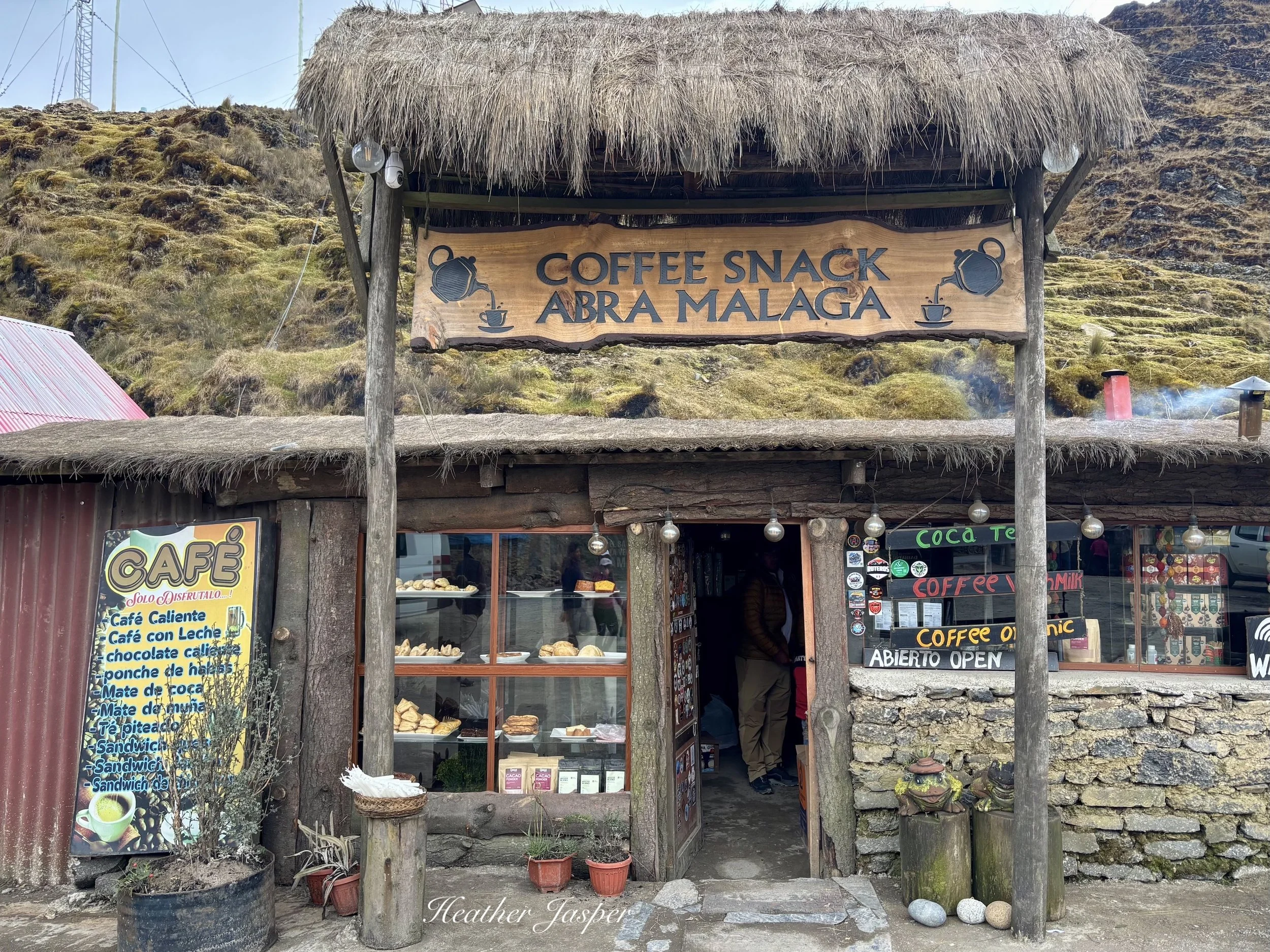 Another half hour driving takes you to the Málaga Pass, Abra Málaga in Spanish. There is a small café where you can get a snack and hot drink, if you want to experience 4,323 meters (14,183 feet) above sea level. There’s rustic bathrooms and a small chapel, where you can see how the Andean custom of asking the Apus (sacred mountains) for safe passage has become a Catholic tradition of praying for safe passage.