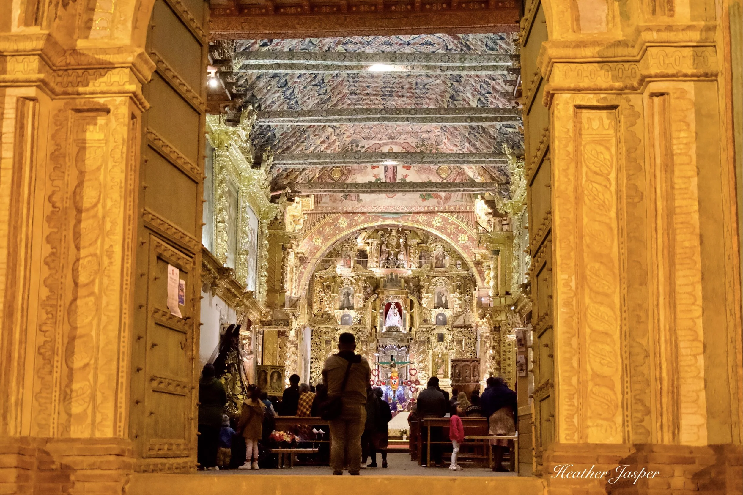 The Andean Baroque Church of Saint Peter the Apostle in Andahuaylillas, Peru is also called the Sistine Chapel of the Americas for its ornate frescoes.