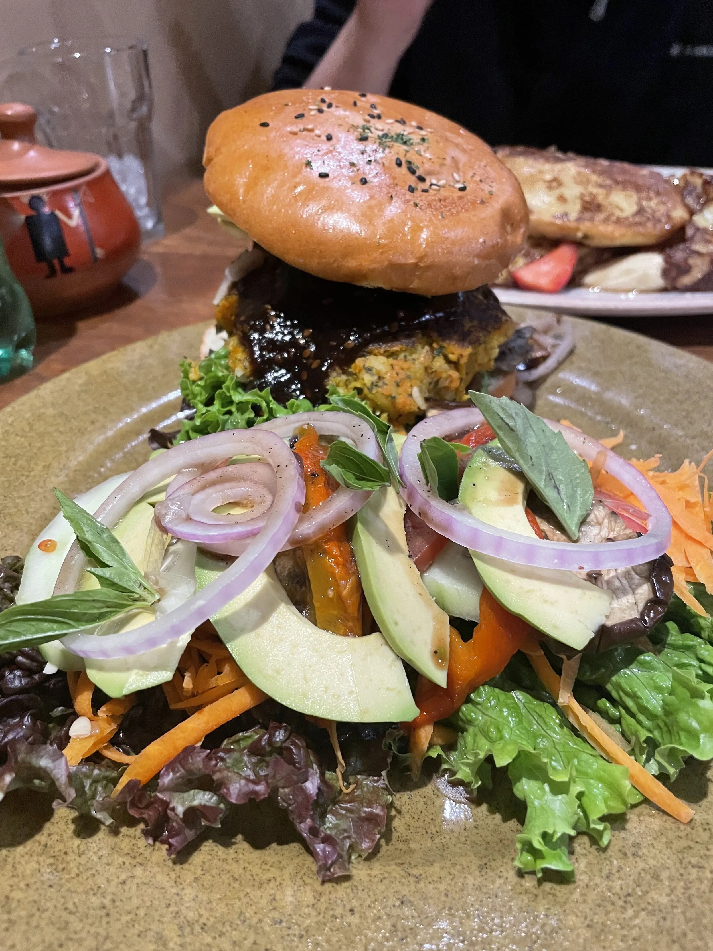 The Thai stir fry, the “Curry really hot” and the Thai sauce on the veggie burger seem a little out of place compared to everything else on the menu but they both work really well when you get them on the table in front of you.